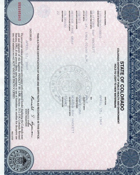 Birth certificate, 1964