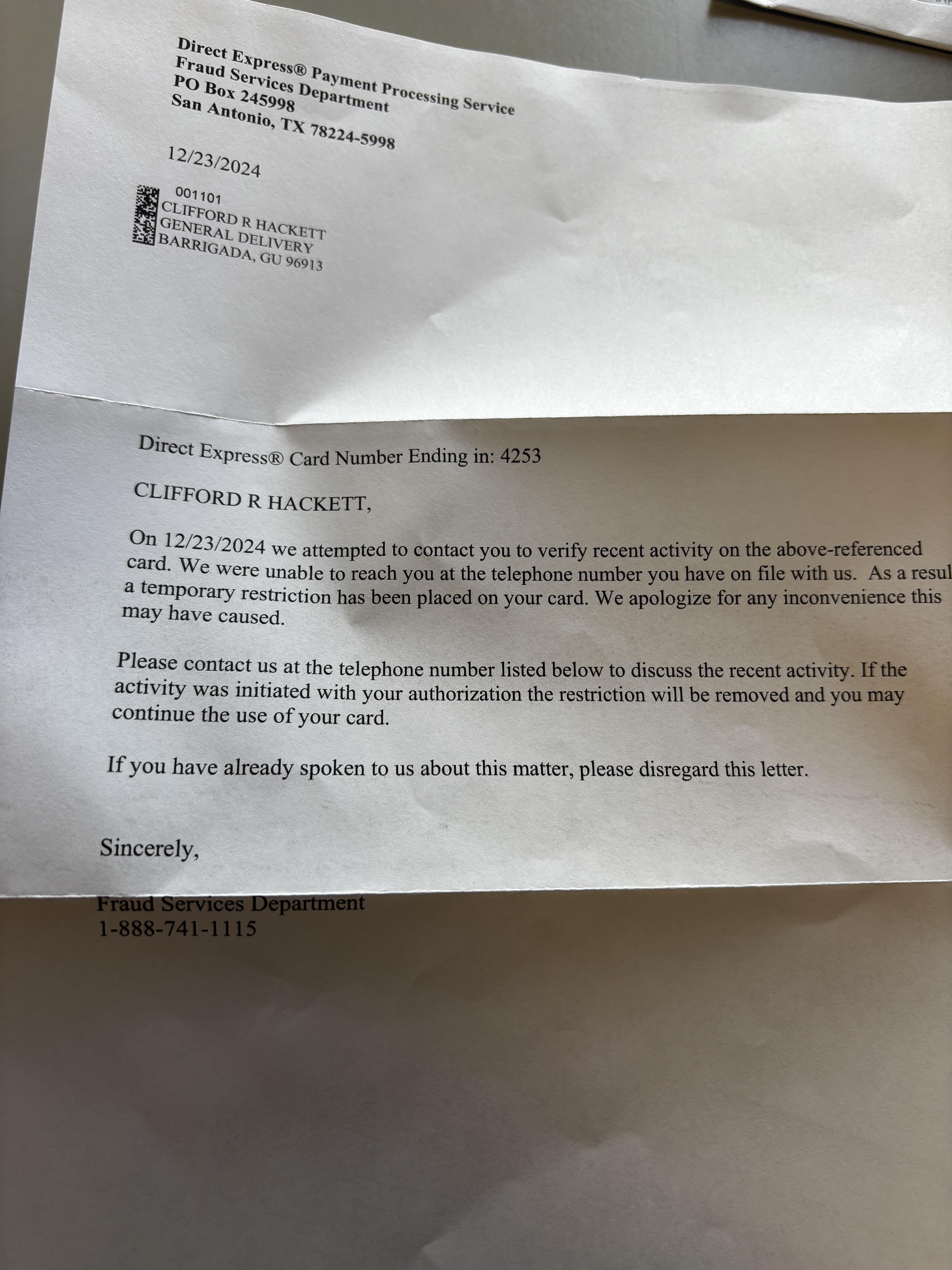 CoMericA Bank direct express lies