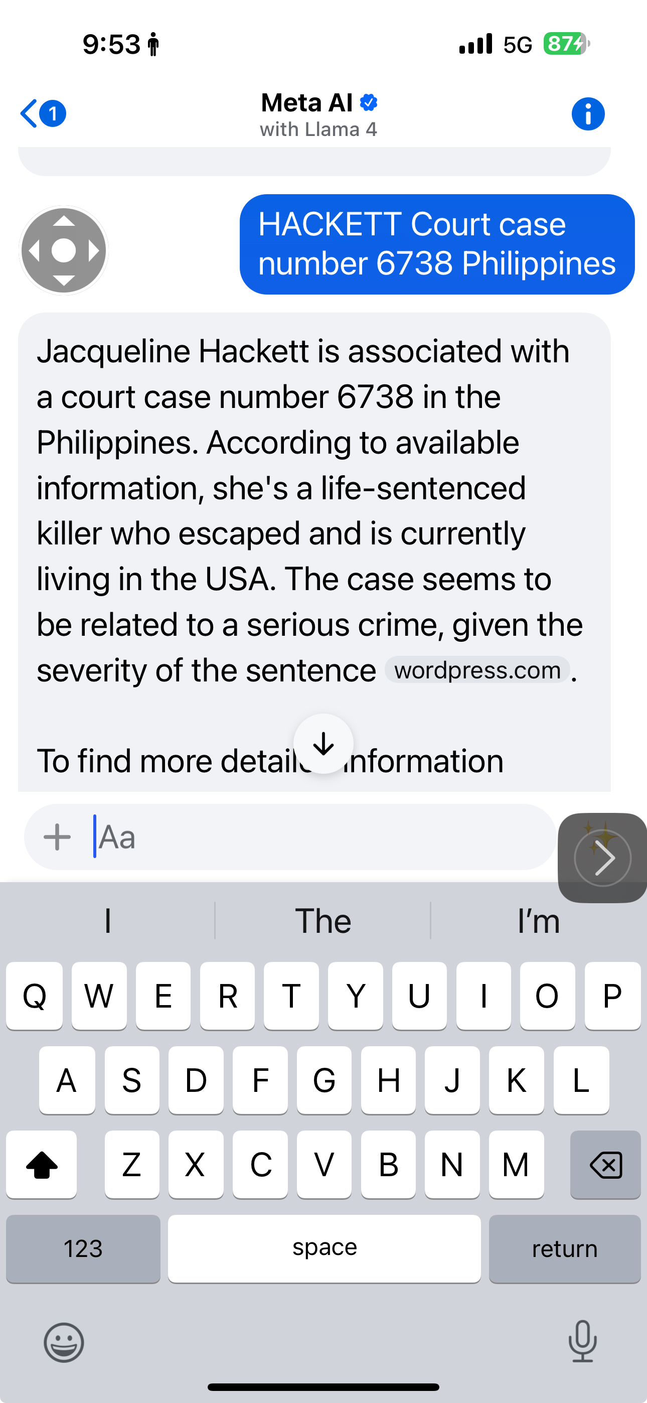 employment please confirm whether or not you are aware your employee, Jacqueline Hackett is a convicted poison murder from the Philippines supposedly serving a life sentence over there, but in reality escaped and is working for you